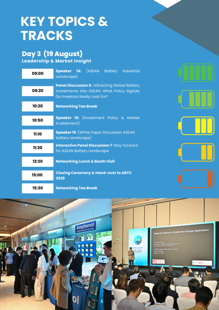 As we gather in this exceptional setting, we invite participants to not only experience the unmatched beauty of Phuket but also to join hands in crafting a legacy of sustainability, safety, and innovation for future generations. The choice of Phuket as the venue for ABTC 2025 underscores our dedication to fostering ASEAN collaboration and leading the global charge in battery technology.